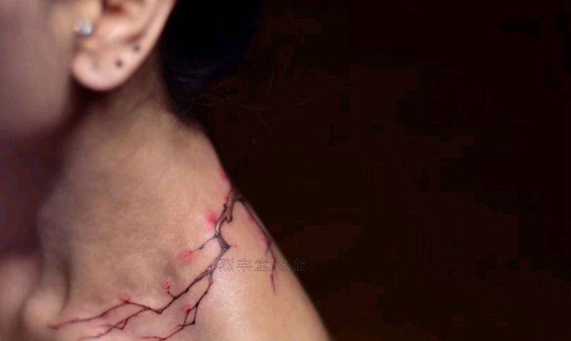 当前位置: 首页 >内蒙古包头市纹身店-烈丰堂刺青纹身图案>梅纹身图片_颈部肩部水彩新传统梅花脖子中式写实纹身图案