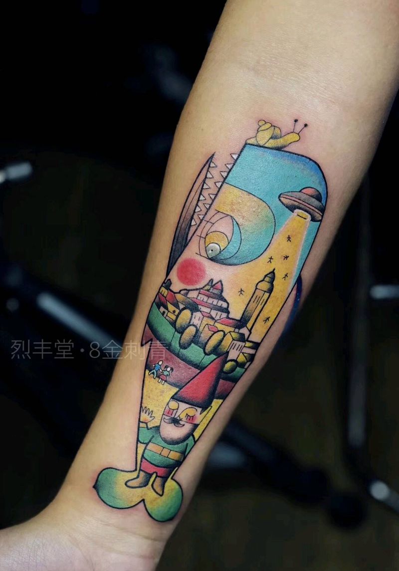 当前位置: 首页 >内蒙古包头市纹身店-烈丰堂刺青纹身图案>乌托邦纹身图片_手臂Old SchoolNew School鲸鱼花臂纹身图案