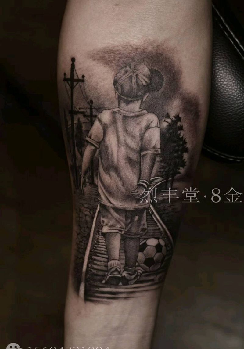 当前位置: 首页 >内蒙古包头市纹身店-烈丰堂刺青纹身图案>童年背影纹身图片_手臂欧美写实写实小臂黑灰纹身图案