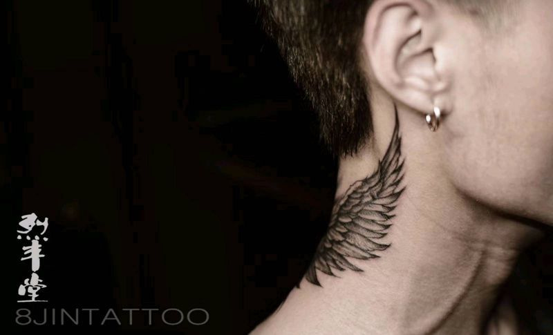 当前位置: 首页 >内蒙古包头市纹身店-烈丰堂刺青纹身图案>堕落天使纹身图片_颈部欧美写实点刺天使脖子纹身图案