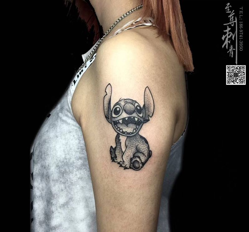 史迪仔纹身图片_手臂New School点刺史迪仔纹身图案