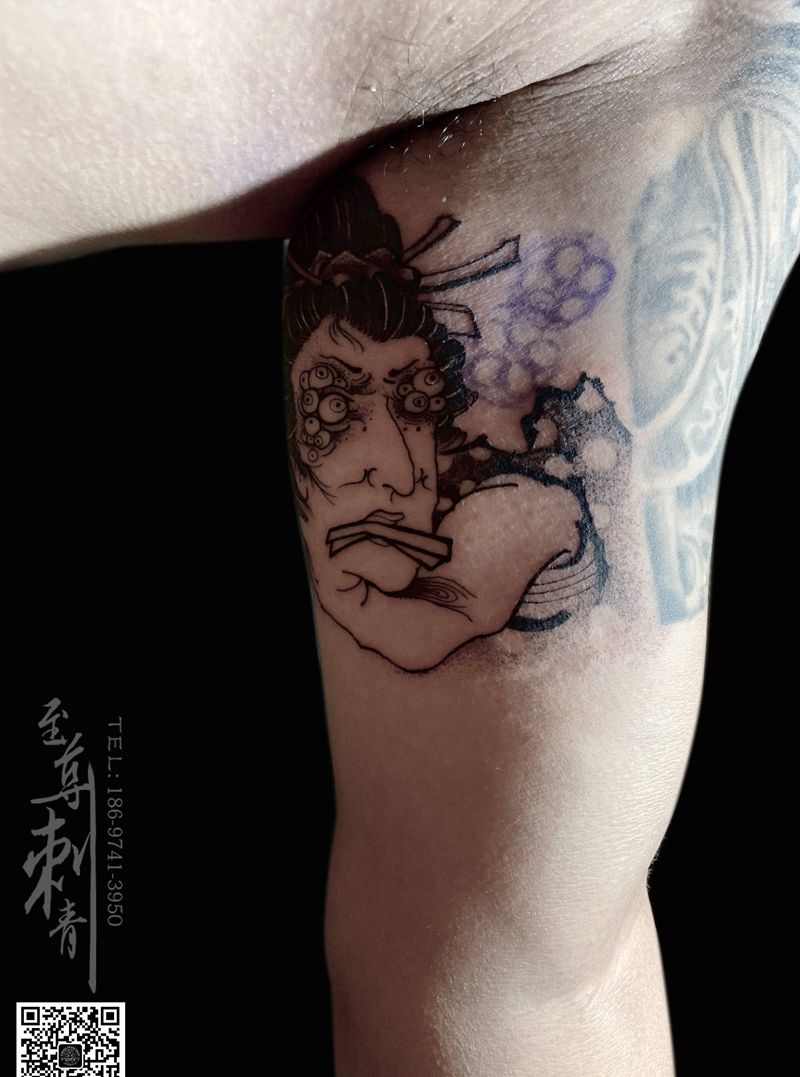 当前位置: 首页 >内蒙古包头市纹身店-至尊刺青纹身图案>暗黑小日式纹身图片_手臂老传统生首日式纹身图案