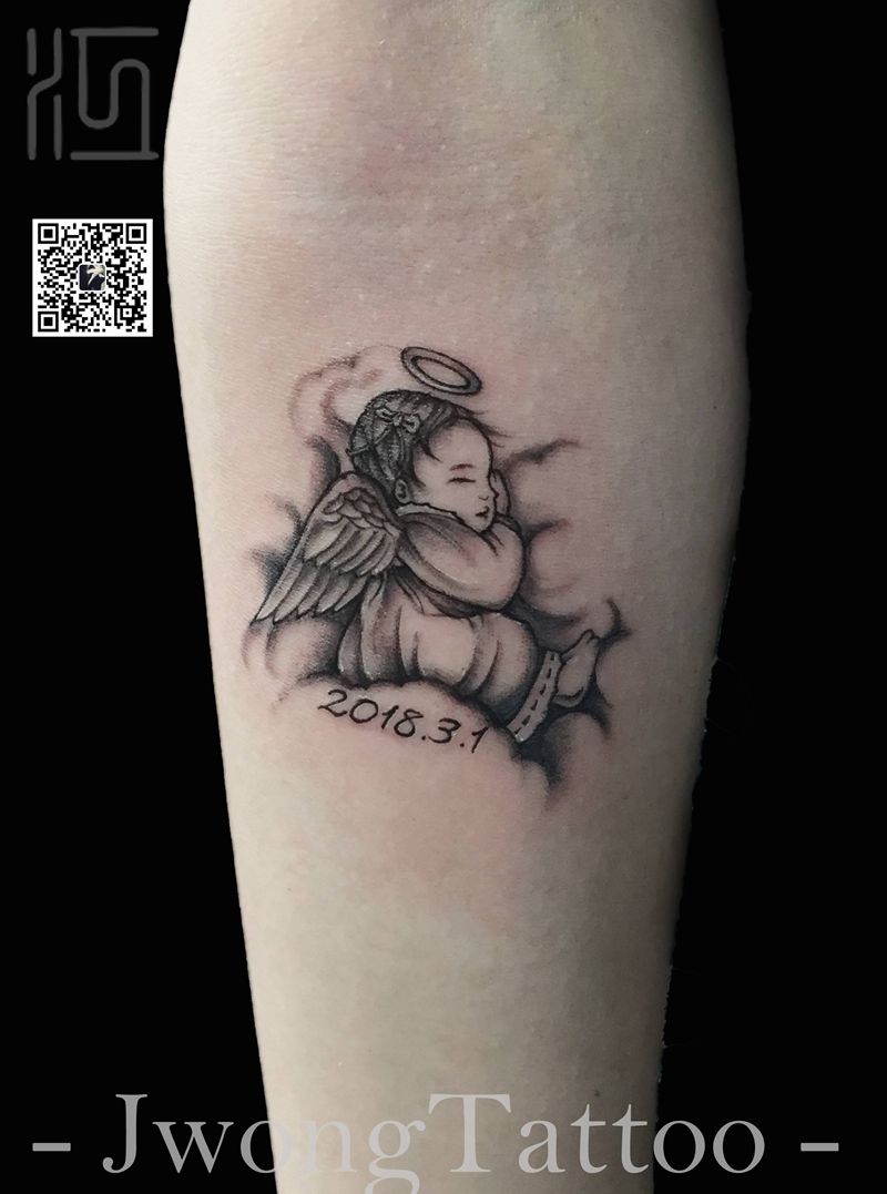 小天使纹身纹身图片_手臂生日天使纹身图案