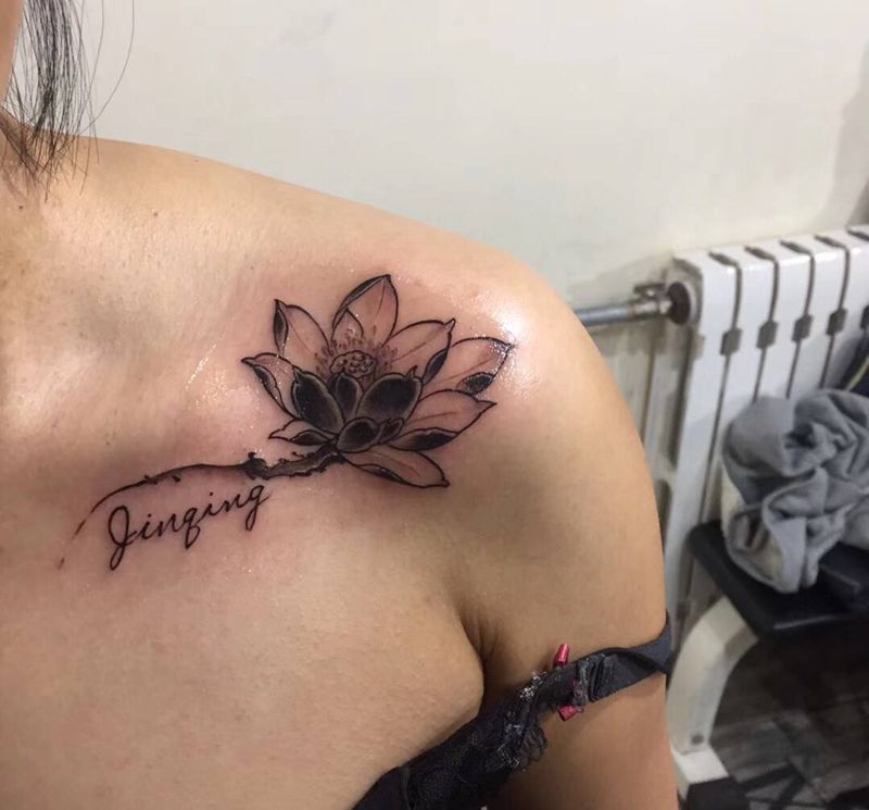 锁骨小荷花纹身图片_胸部新传统纹身图案