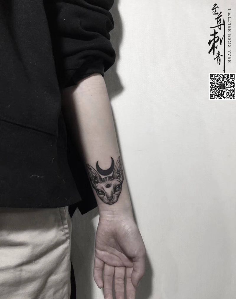 司芬克斯无毛猫纹身图片_手臂点刺猫纹身图案