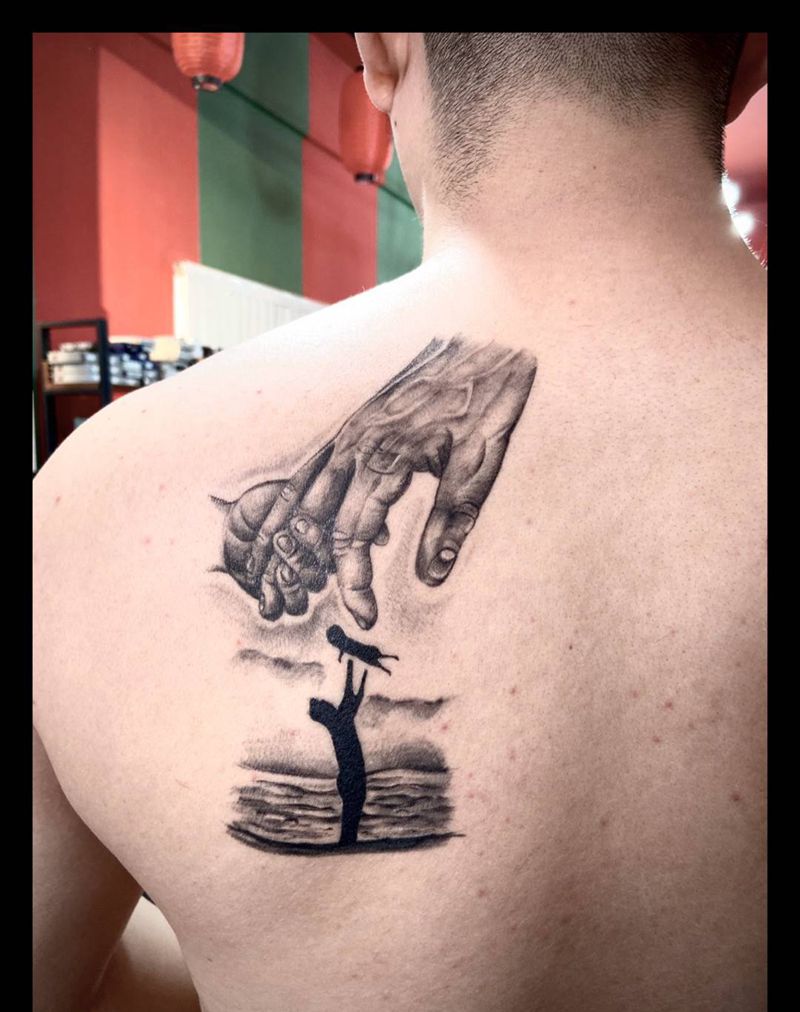 恢复后纹身图片_背部欧美写实父子纹身图案