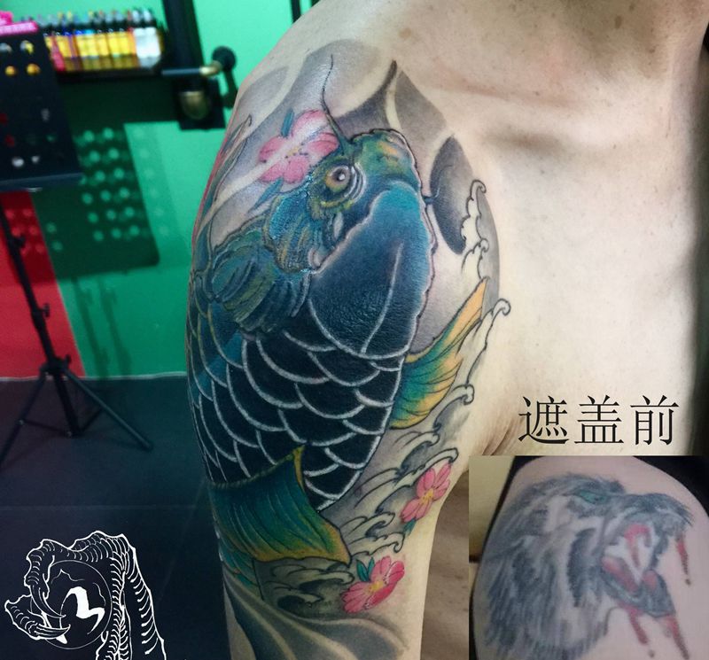 当前位置: 首页 >内蒙古包头市纹身店-至尊刺青纹身图案>鲤鱼遮盖纹身图片_手臂新传统鱼遮盖纹身图案