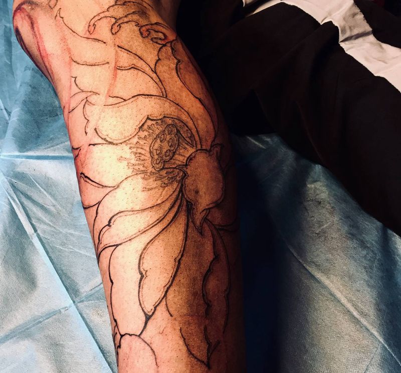 • T网红王老大花腿龙纹身图片_腿部新传统纹身图案
