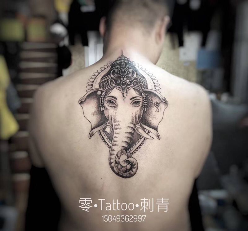 当前位置: 首页 >内蒙古包头市纹身店-零•Tattoo•刺青纹身图案>象神纹身图片_背部点刺New School纹身图案