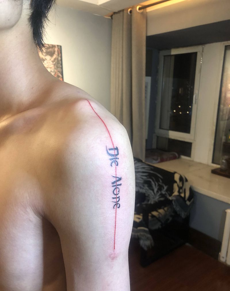 当前位置: 首页 >内蒙古包头市纹身店-黑夜纹画tattoo纹身图案>孤独的死去纹身图片_肩部手臂New School几何纹身图案