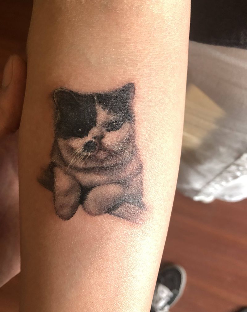 当前位置: 首页 >内蒙古包头市纹身店-黑夜纹画tattoo纹身图案>小喵咪纹身图片_手臂欧美写实纹身图案