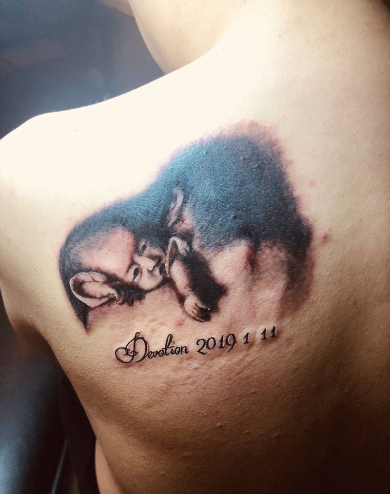 当前位置: 首页 >内蒙古包头市纹身店-黑夜纹画tattoo纹身图案>挚爱纹身图片_肩部背部欧美写实素描黑灰纹身图案