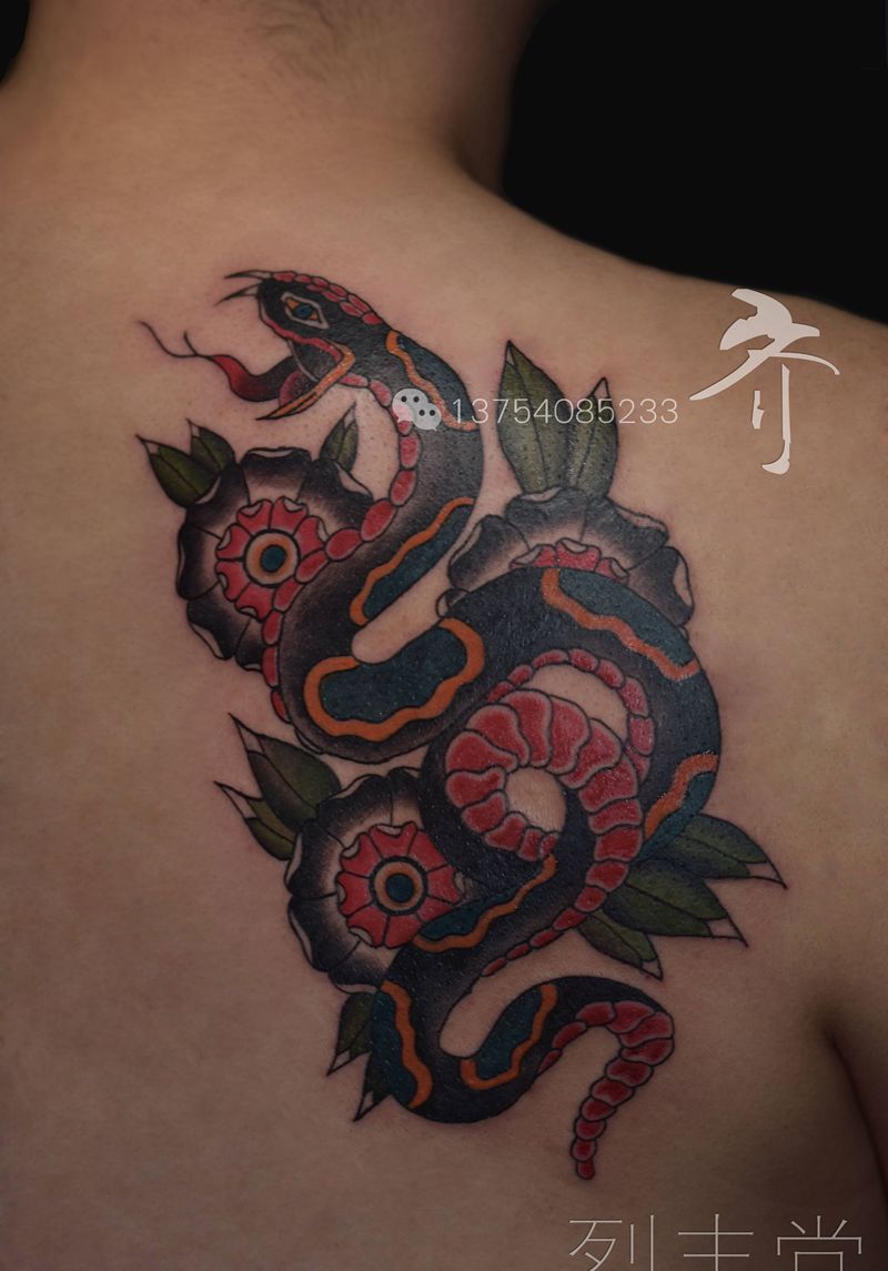 当前位置: 首页 >内蒙古包头市纹身店-烈丰堂刺青纹身图案>old school蛇纹身图片_肩部Old School纹身图案
