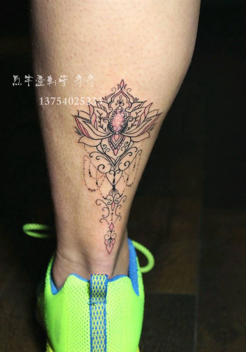 梵花纹身图片_腿部几何图腾纹身图案