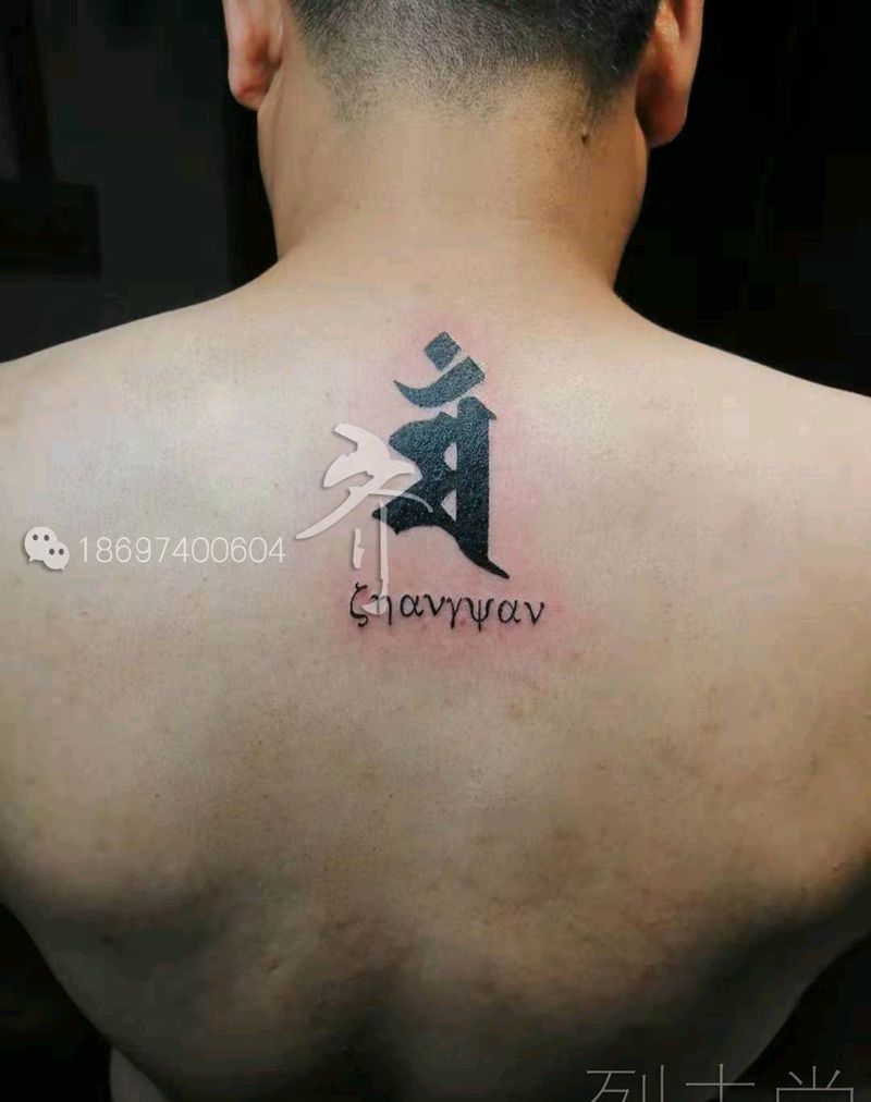 当前位置: 首页 >内蒙古包头市纹身店-烈丰堂刺青纹身图案>梵纹身图片_背部花体字纹身图案