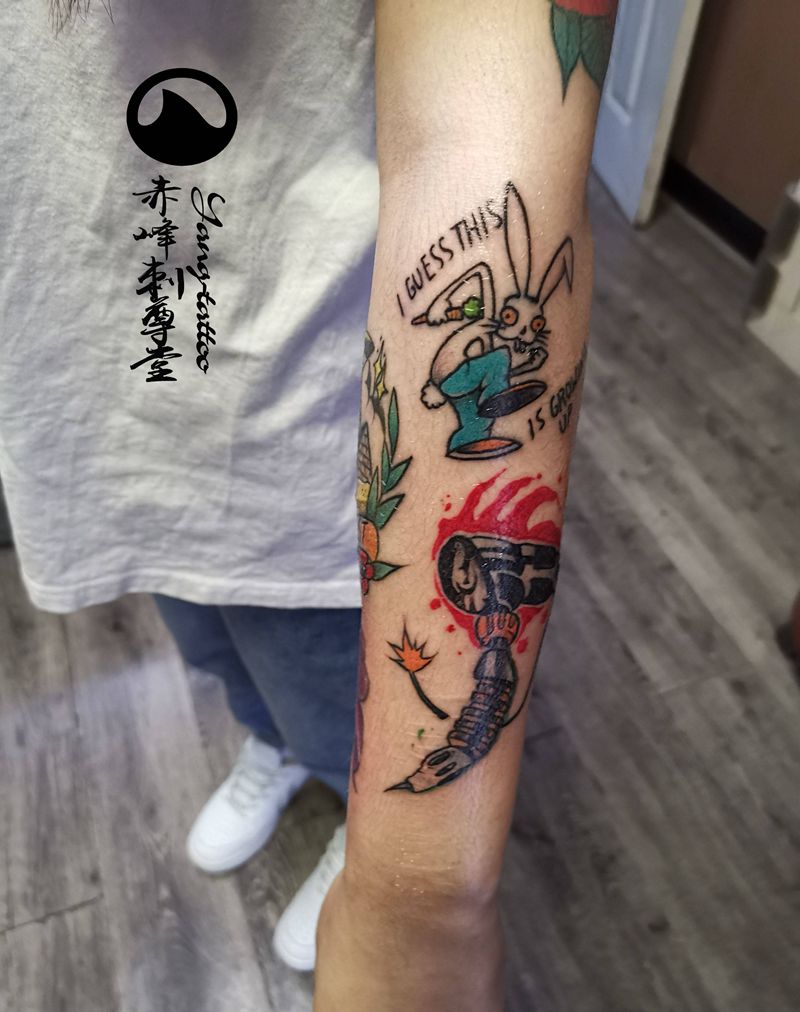 当前位置: 首页 >内蒙古赤峰市纹身店-刺尊堂纹身纹身图案>赤峰刺尊堂 school纹身图片_手臂New School纹身图案