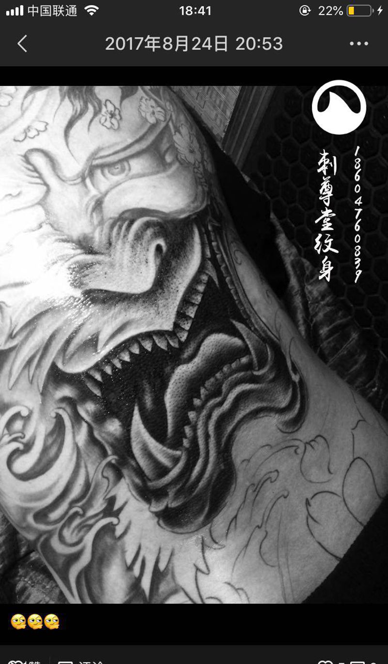 • T网红王老大花腿龙纹身图片_腿部新传统纹身图案