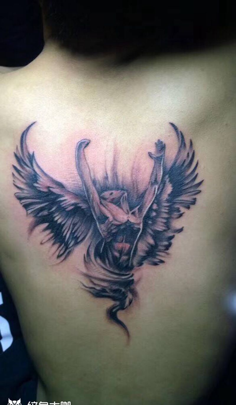 黑灰满背纹身图案