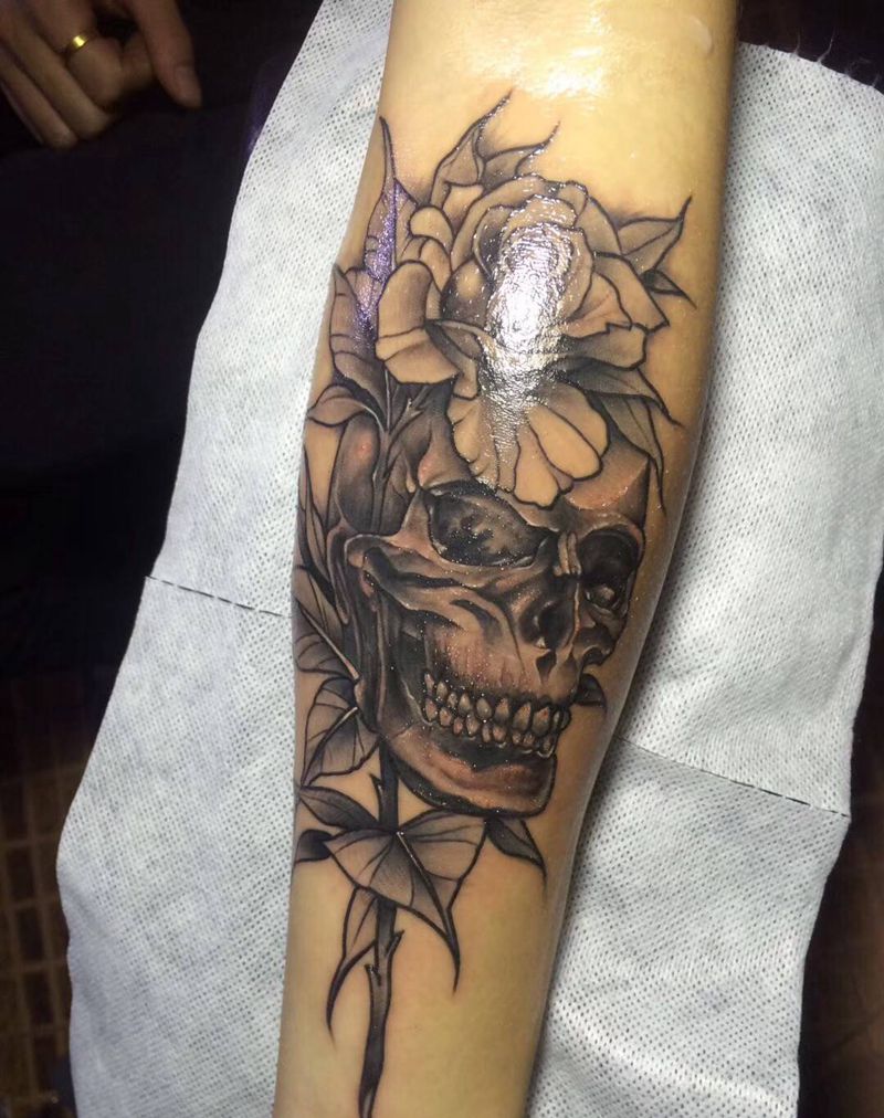 当前位置: 首页 >内蒙古赤峰市纹身店-刺尊堂纹身纹身图案>骷髅纹身图片_手臂欧美写实纹身图案