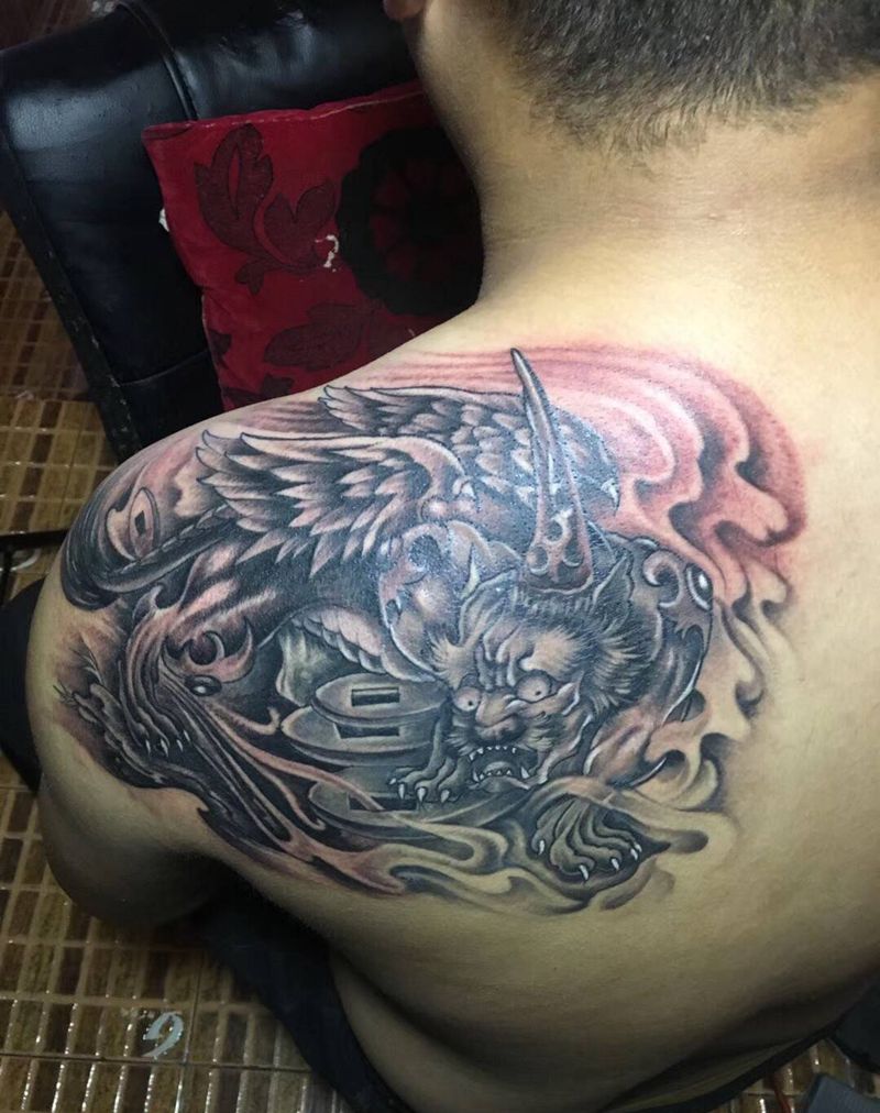 • 纹身吧推荐的披肩图腾半胛纹身图案作品展示