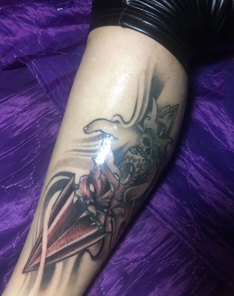 • T网红王老大花腿龙纹身图片_腿部新传统纹身图案