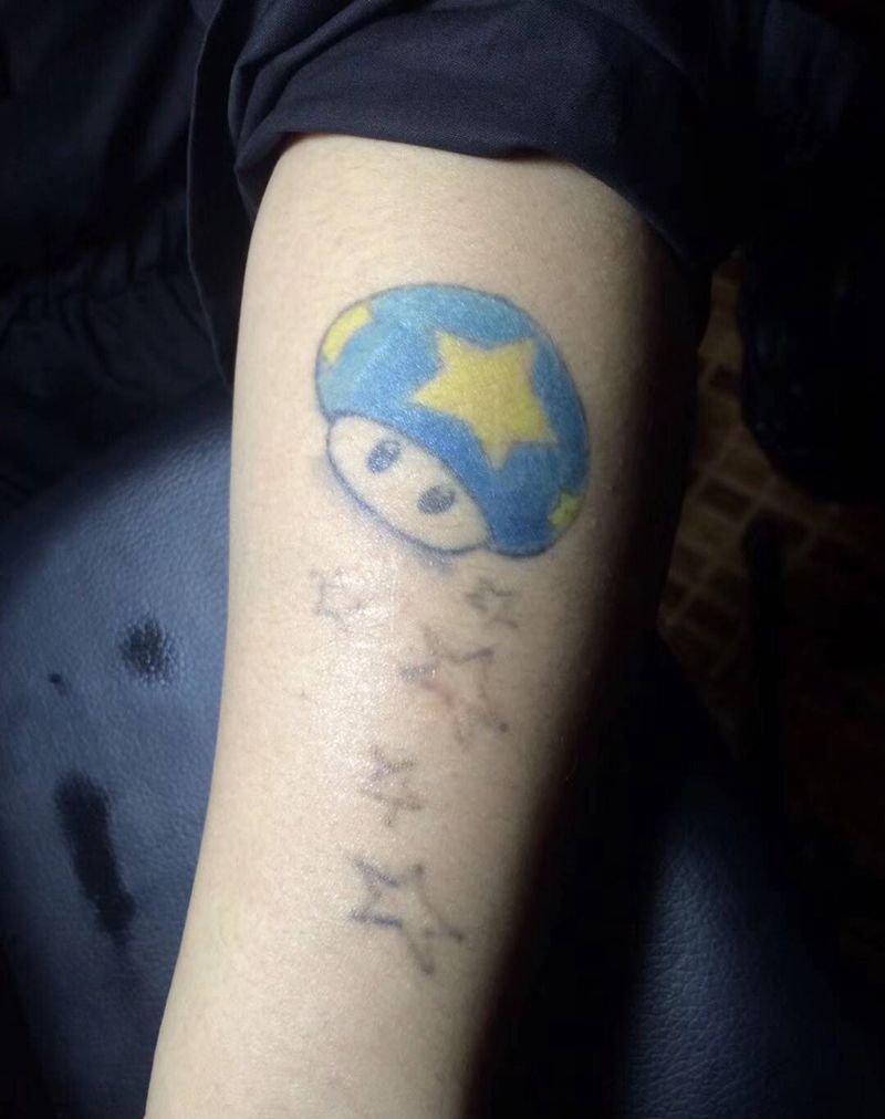 当前位置: 首页 >内蒙古赤峰市纹身店-刺尊堂纹身纹身图案>遮盖纹身图片_手臂New School水彩纹身图案