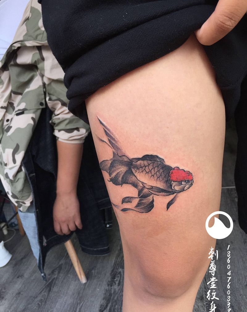 刺尊堂纹身-金鱼纹身图片_腿部新传统纹身图案