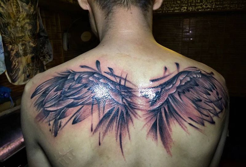 当前位置: 首页 >内蒙古赤峰市纹身店-刺尊堂纹身纹身图案>刺尊堂纹身-翅膀纹身图片_背部水墨新传统纹身图案