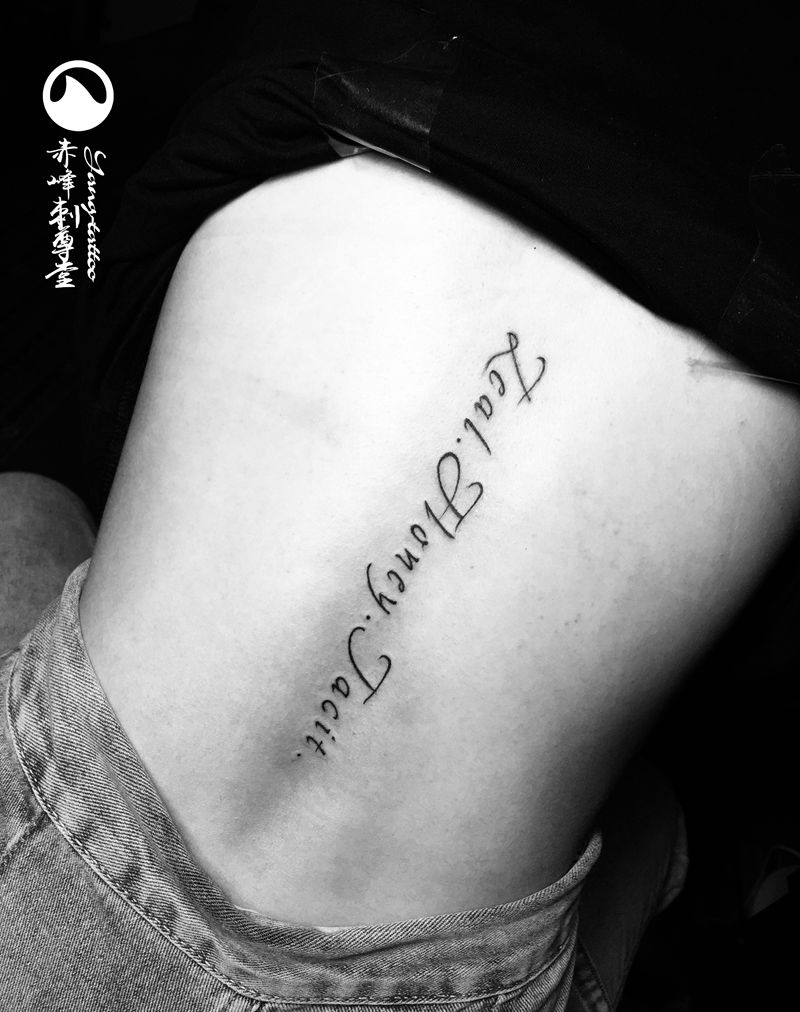 赤峰刺尊堂-字母纹身图片_腰部花体字纹身图案