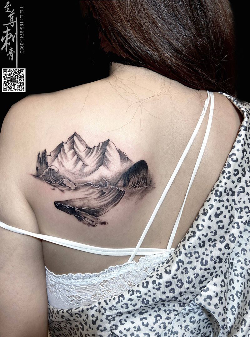 当前位置: 首页 >内蒙古包头市纹身店-至尊刺青纹身图案>山和鲸鱼纹身图片_背部点刺纹身图案