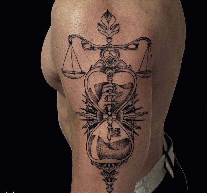 天平纹身图片_手臂纹身图案