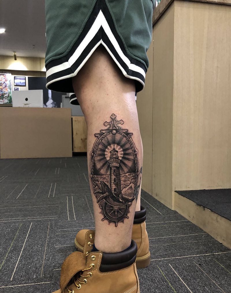 当前位置: 首页 >内蒙古赤峰市纹身店-TDK TATTOO纹身图案>school灯塔 鲸鱼纹身图片_腿部New School纹身图案