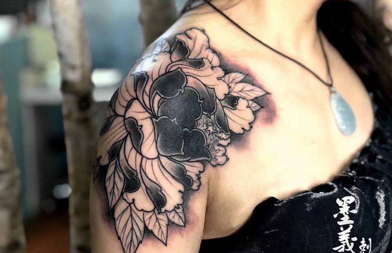 黑灰满背纹身图案