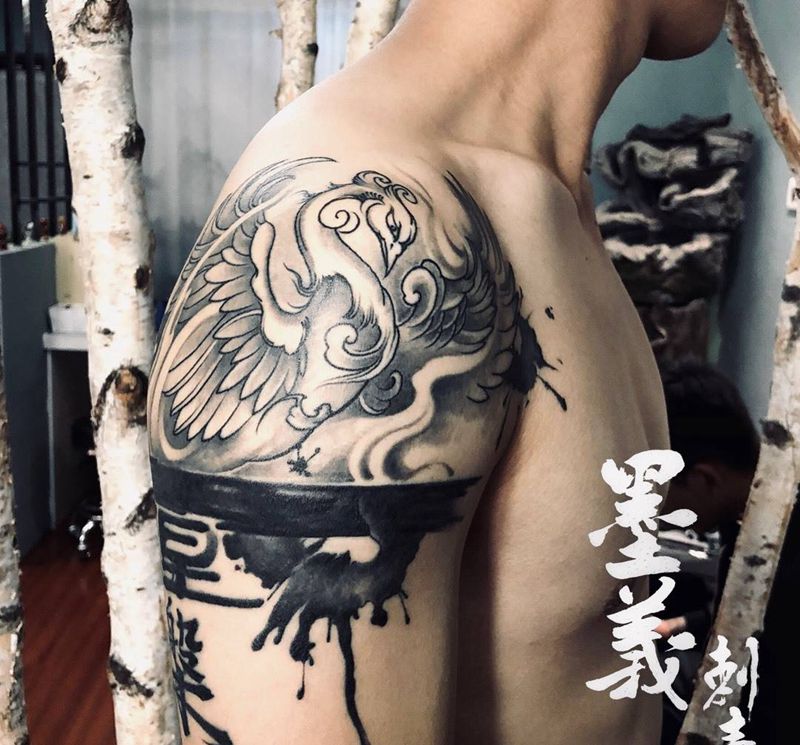当前位置: 首页 >内蒙古包头市纹身店-墨义刺青纹身图案>凤凰涅槃纹身图片_手臂肩部新传统老传统纹身图案