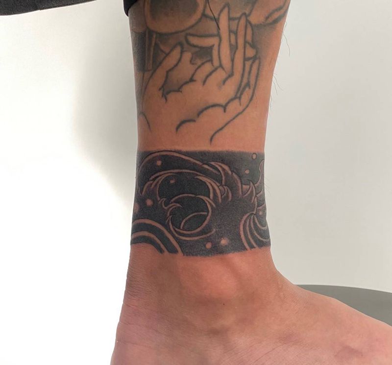 腿环浪花纹身图片_腿部老传统浪花臂环腿环纹身图案