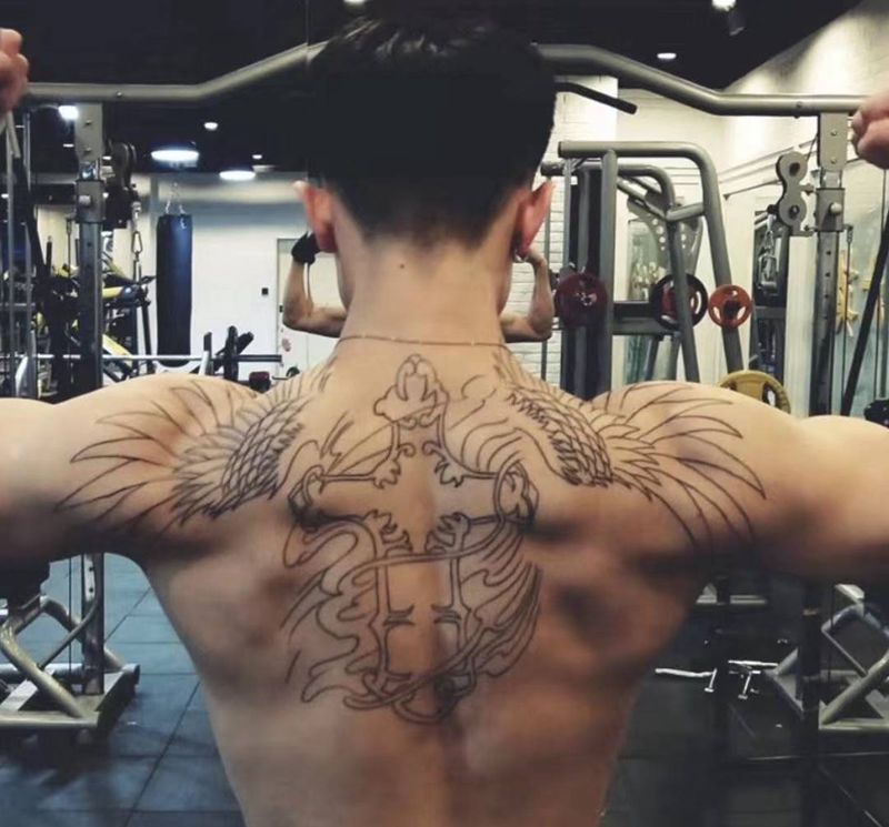 修改老作品纹身图片_肩部背部新传统纹身图案