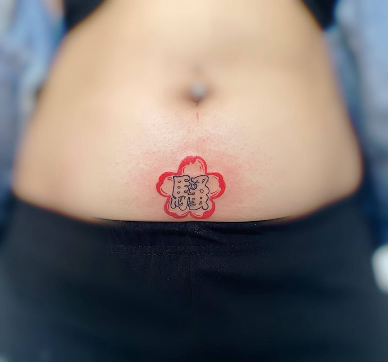 • 时尚性感的腹部莲花纹身图案