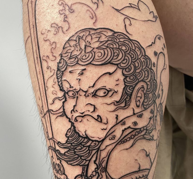 不动明王纹身图片_腿部新传统不动明王腿部纹身图案