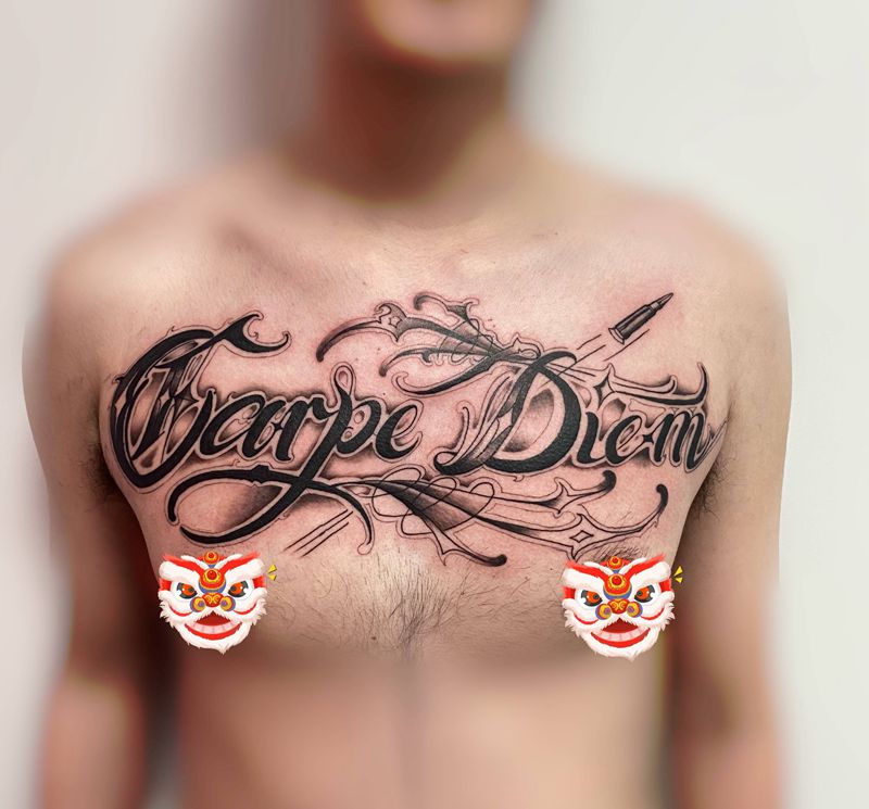花体字纹身图片_胸部花体字花胸花体字英文纹身图案