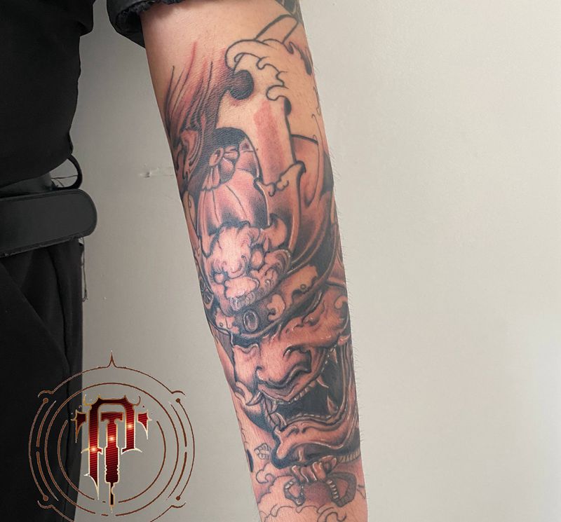 纹身修改纹身图片_手臂新传统修改鬼武士纹身图案