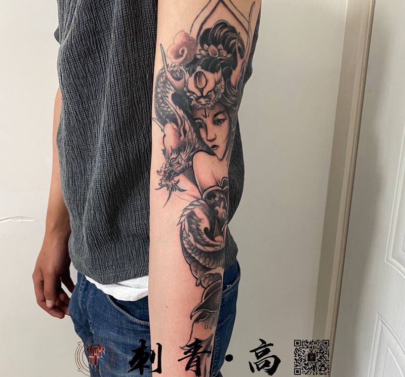 当前位置: 首页 >内蒙古赤峰市纹身店-高刺青纹身图案>修改老作品纹身图片_手臂新传统龙女修改纹身图案