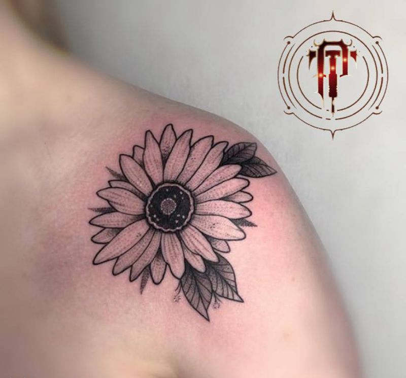 遮盖纹身图片_肩部点刺遮盖花纹身图案