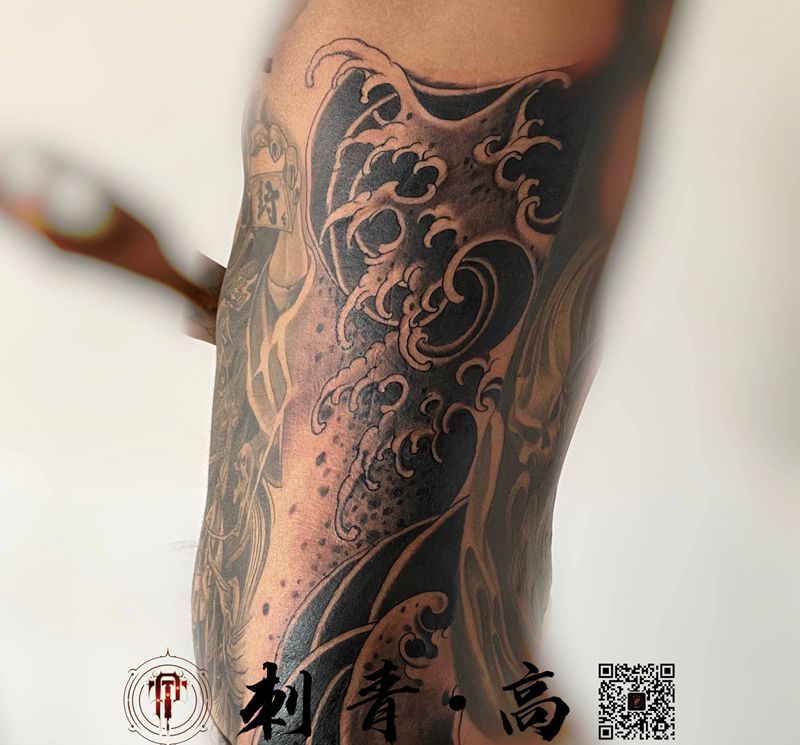 黑灰满背纹身图案