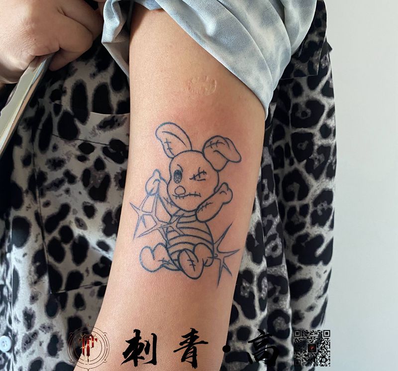 花臂ing纹身图片_手臂几何花臂拼接可爱纹身图案