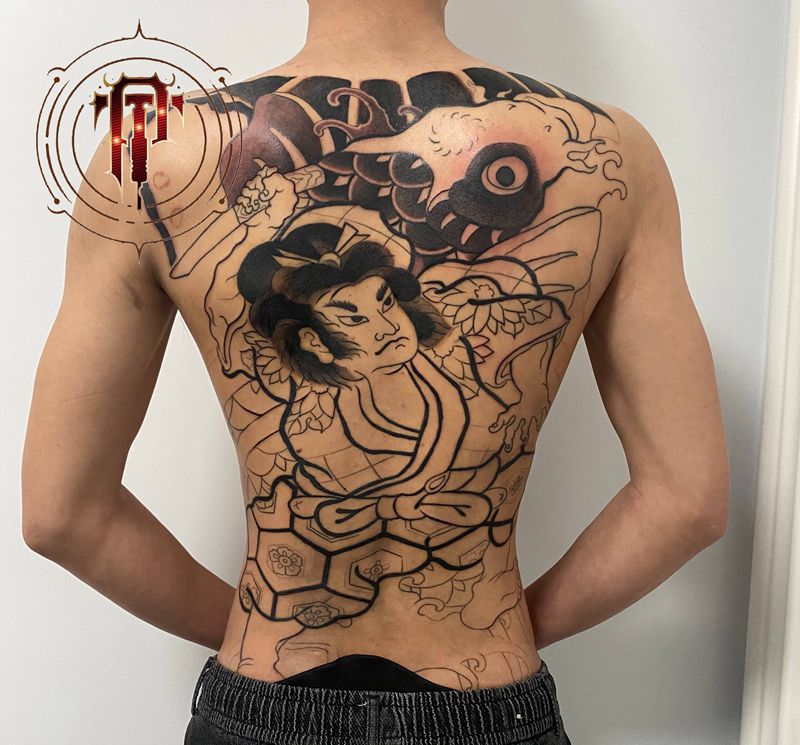 鬼若丸杀鲤纹身图片_背部老传统鬼若丸老传统满背纹身图案