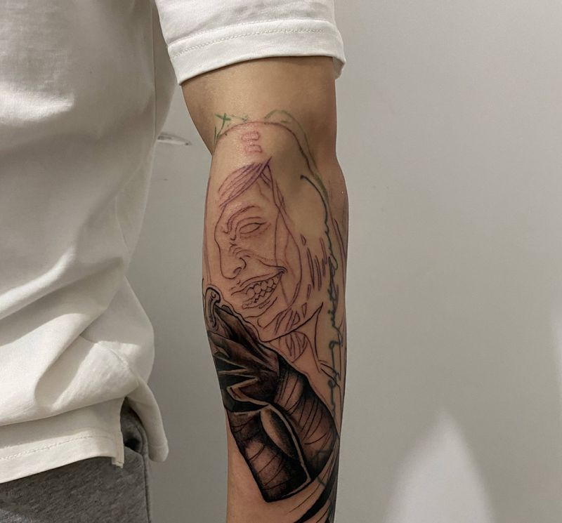 当前位置: 首页 >内蒙古赤峰市纹身店-高刺青纹身图案>Black work遮盖纹身图片_手臂新传统暗黑遮盖纹身图案