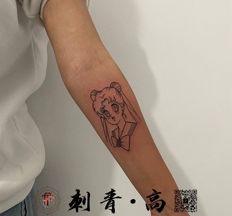 美少女战士纹身图片_手臂几何美少女纹身图案