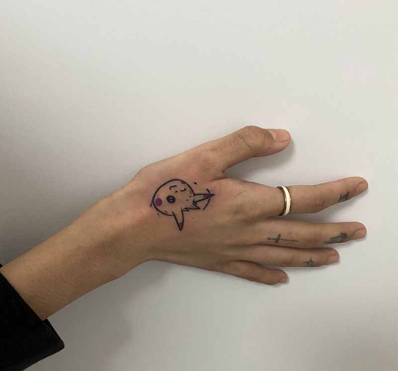 • 手背潮流时尚的玫瑰花眼睛纹身图案
