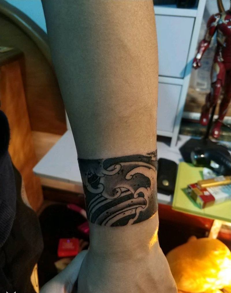 手环纹身图片_手部老传统浪纹身图案