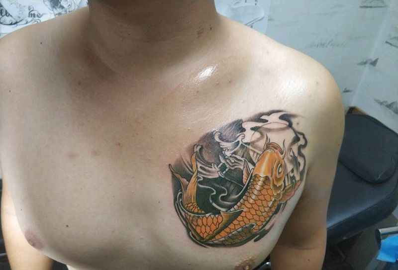 当前位置: 首页 >内蒙古赤峰市纹身店-回山刺青纹身图案>鲤鱼遮盖纹身图片_胸部老传统鱼纹身图案
